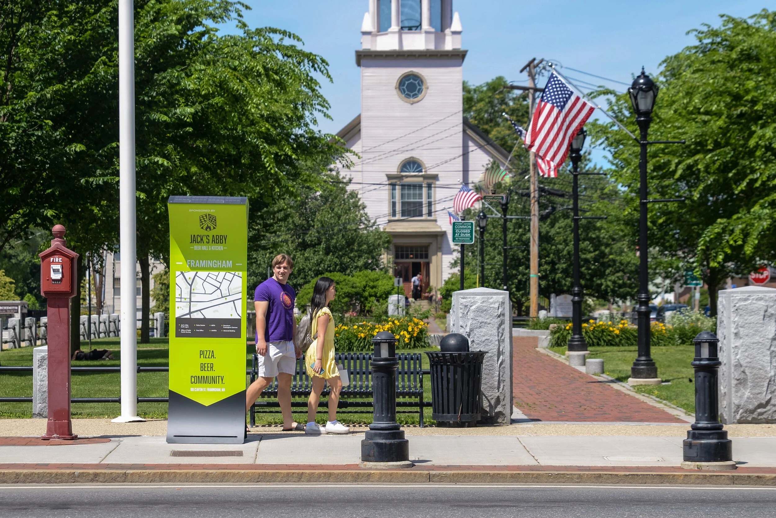 Soofa Signs have arrived in Framingham, MA. Just 45 minutes west of Boston, downtown Framingham is home to a collection of restaurants, shops, and the popular brewery Jack’s Abby.
