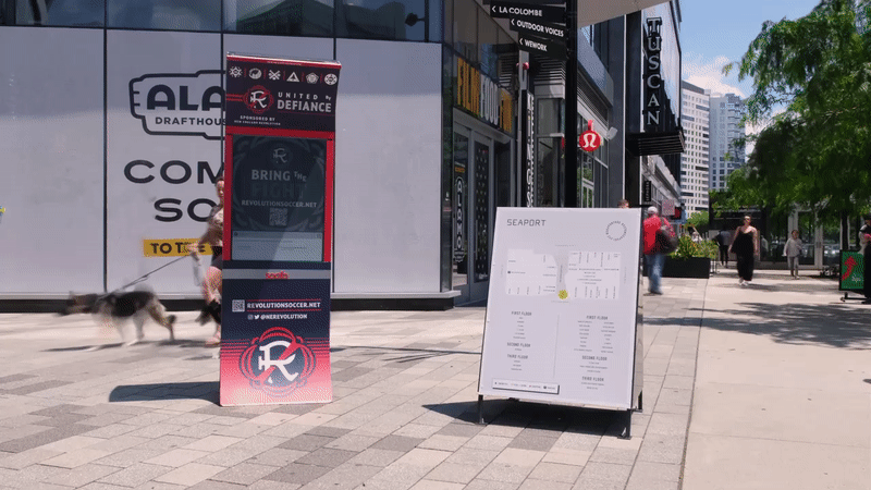 The New England Revolution utilizes all types of OOH platforms, including Soofa Signs. They started their Soofa journey in 2020 with a digital and static campaign in Boston Seaport. Since then, they ran a similar campaign in 2022 promoting their team re-brand, and in 2023 they’ve renewed once again to expand their brand reach and drive traffic to their website.