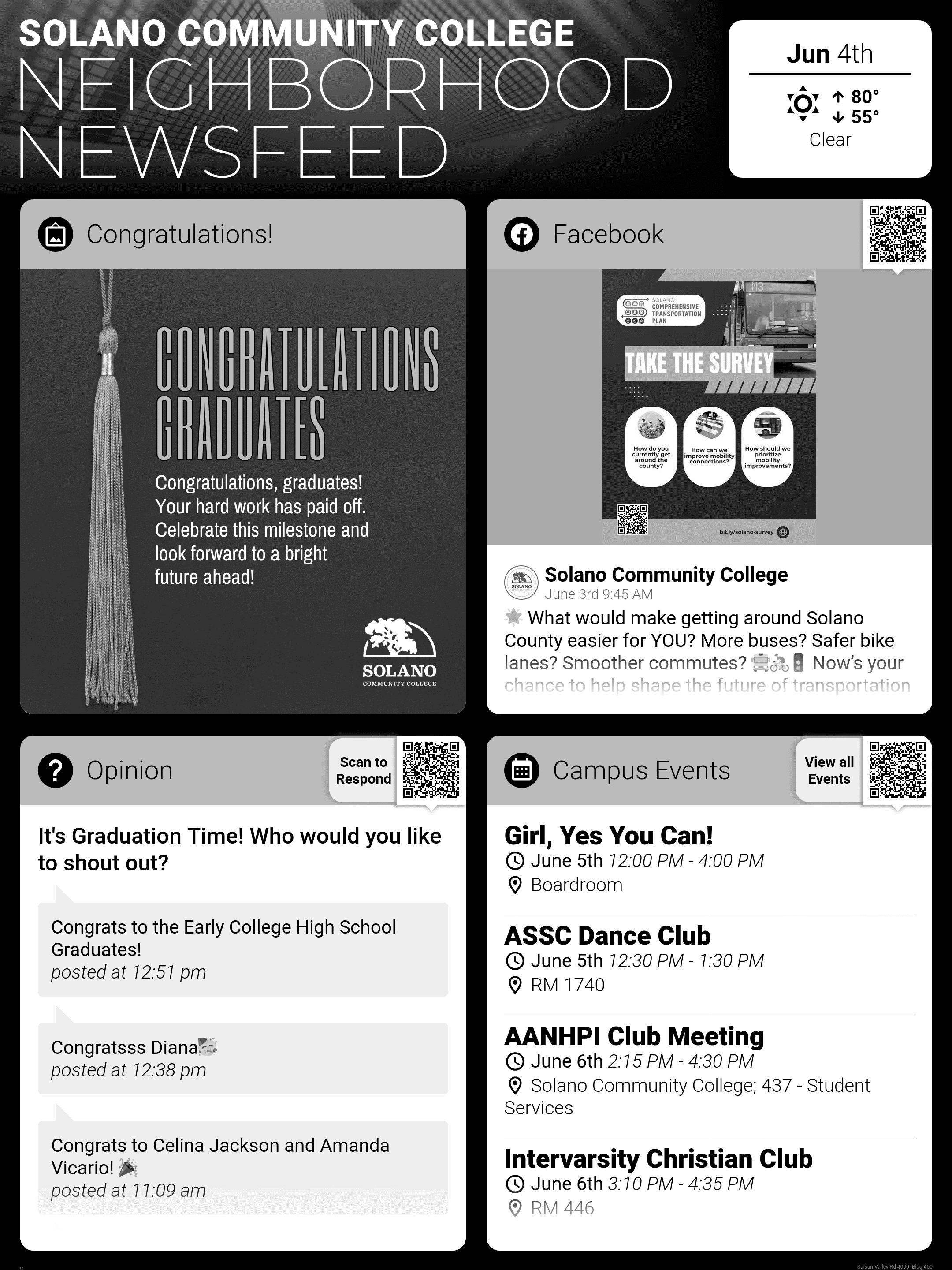 “The new Soofa signs are more than just digital kiosks—they’re a bridge between Solano Community College and the community we serve. By lowering barriers to access and delivering real-time updates, they help students and visitors feel more connected and informed as they move across campus,” said Christina Lee, Marketing and Communications Director at Solano Community College. “What makes these kiosks especially valuable is their standalone design, powered by solar energy and 5G connectivity—ensuring we have a reliable tool for communication even in emergency situations.”